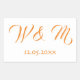 Die perfekte Aufkleber für Hochzeitskunst, dieses Stück ist in einem schönen orangen und weißen Farbschema gestaltet. Orangefarbener Schriftart auf weißem Hintergrund, die Initialen des Paares sind in der Mitte mit dem darunter liegenden Hochzeitstag. Personalisieren Sie Ihre noch heute!