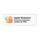 Rücksendeadressen-Aufkleber mit Aquarellbild eines orangefarbenen Kürbis, der mit farbenfrohen Herbstlauben und Sprigs dekoriert ist.