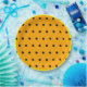 Orangefarbener Hintergrund mit schwarzen geometrischen Polka Punkten. Gelber, kreisförmiger Rahmen. Spaß Muster für Herbst oder zu jeder Zeit. Original Design © TamiraZDesign.