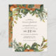 Orange Citrus Aquarell Blütenfarben und Blattwerk Hochzeit speichern Sie die Dattelkarte. Schöne handgedruckte Aquarellfarben mit floralen Aquarellen und moderner Schriftzeichen. Moderne Rostfarbe auf Trend.