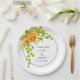 Orangefarbene Blume, Bogen und Monogramm-Hochzeit Pappteller