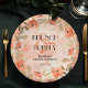 Schöne orangefarbene Blume und elegante Blätter unterstreichen diese Teller Brunch- und Bubbly-Brautparty-Papier-Teller personalisiert mit dem Namen und Party der Braut. PASSENDE Artikel in unserer Sammlung.
