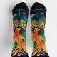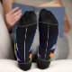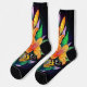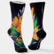 Orangefarbene Blume im schwarzen Sternenhimmel Socken