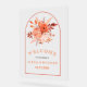 Genießen Sie die Wärme des Herbstes mit diesem zauberhaften Hochzeitsbogen in lebhaften Orangetönen. Ein atemberaubender Strauß aus Dahlien, Rose, Blättern, Blätter und Pampas-Gras verleiht der Touch eine natürliche Schönheit. Persönlich gestalten, indem Sie Ihre Botschaft in der Mitte des Bogens ausdrucken - ein perfekter Weg, um Ihre Gäste in Ihrer Hochzeit im Herbst willkommen zu heißen. Dieses einzigartige und elegante Schild mit seinen schönen Herbstfloralen und der durchsichtigen Acryloberfläche schafft ein unvergessliches Ambiente für Ihren besonderen Tag.
