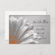 Set mit den hübschen Orangen BlumenHighlights Hochzeit Sichern Sie die Date Announcement Flat Card. Diese elegante, individuell blumengeschmückte Ehe behalte die Dattelkarte mit einem digital verbesserten Blumenfoto einer gerberblütigen Blume mit orangefarbenen Highlights und einem silbergrauen Hintergrund.
