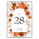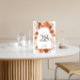 Orangefarbene Botanische Arche Hochzeit Tischnummer