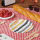 Orangefarbene gelbe und schwarze Streifen Pappteller