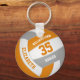 Der sportliche Schlüsselanhänger zum Thema Volleyball für Jungs und Jungen bietet einen realistischen Orange-, Grau- und Weißvolleyball, auf dem Sie den Namen und die Trikots des Spielers sowie den Namen der Schule oder des Clubs und des Maskottchens in einem Schriftart im Stil eines Buchstaben anpassen können - von katz_d_zynes