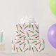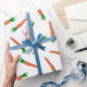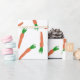 Ermutigen Sie gesunde Ernährung mit diesem Verpackungspapier, das die Abbildungen von orangen und grünen Karotten vor weißem Hintergrund zeigt. Das ganze Gewand hat einen lustigen Stil, der perfekt ist als eine einzigartige Osterpackung oder zum Verpacken von Gemüsegesendungen.