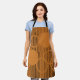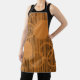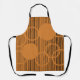 Diese Schürze hat ein modernes Design von schwarzen senkrechten Linien mit Kreisen, die auf einem orangefarbenen Feld verstreut sind.