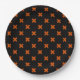 Orangefarbene Kreuzstiche auf schwarz Pappteller