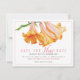 Orangefarbene Glockenblütenlilie in Orange, Rosa und Weiß rette die neue Dattelkarte. Bearbeiten Sie diese Save the Date-Karte mit Ihren eigenen Namen und Ihrem Hochzeitstermin. Weitere passende Artikel sind verfügbar. Original Aquarellmalerei und Design von Sarah Trett für www.mylittleedenweddings.com