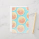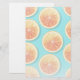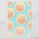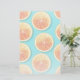 Ein Muster aus frischen und saftig orangefarbenen Scheiben in den Mandarinen Orange und Rot Orange, mit einer Aquarellstruktur, die das Ganze frisch zuschneidet. Sie sind auf einem hellblauen Hintergrund für einen hellen und sommerlichen Look platziert.
