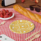 Orangefarbene Scheiben, Muster tropischer Früchte Pappteller
