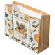 Hübsche Vintage orangefarbene Scheiben und Kiefernäste orange und grün, warme Farben Weihnachtsgeschenktasche. Fügen Sie Ihren Feierlichkeiten eine gemütliche Touch hinzu, mit dieser Weihnachtsgeschenktüte zum Thema Zitrusfrüchte.