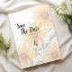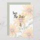 Eine moderne orangefarbene, grüne und sonnenblühende Sommerblütenhochzeit Rettet die Einladung zum Date. Diese botanische Sonnenblume Sommerblumeneinladung ist perfekt für jedes stilvolle und raffinierte Mädchen oder jeden. Dieses Design eignet sich perfekt für ein trendiges und stilvolles Hochzeitsfest im Freien. Passen Sie dieses Design mit Ihren eigenen Nachrichten und personalisierten Informationen an. Alle Designs sind gedruckt.