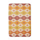 Das elegante Muster der modernen atomaren Sternexplosionen aus der Mitte des Jahrhunderts ist auf Ogee-Ovalen in Orange, Gelb, Bordeaux und Bernstein platziert. Es ist eine großartige dekorative Badematte für jeden, der das Atomzeitalter der Liebe retro gestaltet