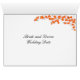 Ein hübsches Design von leuchtend orangefarbenen Blüten betont die "Tischnummer" Das Blütendesign ist innen und auch auf der Rückseite, so hübsch. Fügen Sie den Namen und das Hochzeitsdatum der Braut und Bräuche hinzu.