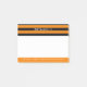 Orangefarbene und schwarze Rugby Streifen mit Indi Post-it Klebezettel