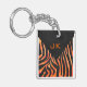 Orangefarbene und schwarze Zebra-Monogramm Schlüsselanhänger