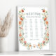 Erleben Sie Romantik und Eleganz mit diesem raffinierten Plakatposter, das mit einem eleganten, orangefarbenen Blumenkranz geschmückt ist. Dieses Poster mit insgesamt 12 Tischen fügt Ihrer Hochzeitsdekoration eine raffinierte Touch hinzu.