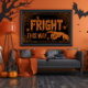 Eine morbide Hand zeigt die Richtung auf dieses Makabre, Spinne und Web gefüllt Fright This Way Poster, mit orangefarbenem Glitzer auf dramatischen Jet schwarzen Hintergrund.
