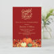 Terrakotta, gebrannter orangefarbener Hintergrund. Die Einrichtung ist mit Kürbissen und orangen und gelben Blumen geschmückt. Personalisieren Sie die Party-Details und fügen Sie sie hinzu. Text-Skript: Dankbar und gesegnet.