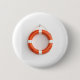 Orangefarbener Rettungsring an einer weißen Wand, Vorderansicht