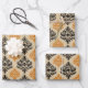 Schwarze und orangefarbene Damast-Designs haben Schädel in ihren Zentren, perfekt zu Halloween! Der Hintergrund ist hellorange. Ideal für decoupage Art, Papierhandwerk oder Geschenkverpackung