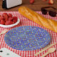 Orangefarbenes, blaues, gekreuztes, Diamant-Musterpapier. Ein modernes mediterranes, marokkanisches, arabisches, indisches Design kombiniert nahtlos, um Ihr Dinner-Tisch Zuhause Dekor zu verbessern. Diese Teller sind ein elegantes und stilvolles Accent Accent Accent, das Ihnen beim Set der Stimmung Ihres Essens, Cocktails, Unterhaltung und Party-Erlebnis hilft. Ich würde mich freuen, mit Ihnen zu widerrufen, zu tint, oder Design zu entwerfen, einfach nur zu sagen, dass ich anfangen kann.