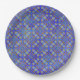 Orangefarbenes, blau gecrolltes Diamantmuster Pappteller