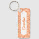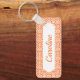 Orangefarbenes Peeling mit weißem Crochet-Spitzenm Schlüsselanhänger