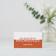 Einfach, hell und modern ist das Aussehen dieser Visitenkarte. Ein geschäftlicher oder persönlicher Name ist auf der Vorderseite der Karte vorherrschend, mit den wichtigsten Kontaktinformationen, entweder einer Telefonnummer oder einer Website, die aus der hellen orangefarbenen Tafel unten. Fügen Sie eine Beschreibung der Dienste auf der Rückseite mit Kontaktinformationen Druck unten in orange. Erhältlich in alternativen Farben.
