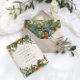 Orangefarbene Zitrusfrüchte Aquarell Blüten und Blattwerk Einladung Hochzeit. Schöne handgedruckte Aquarellfarben mit floralen Aquarellen und moderner Schriftzeichen. Moderne Rostfarbe auf Trend.