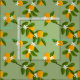 Vintage sage green fabric patterned with pretty citrus oranges and leaves