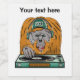 Eine lustige Cartoon-Illustration eines niedlichen Orang-Utans, Musik auf einer Turntable, mit einer Schallplatte. Dieser coole Orang-Utan hat ein Tattoo und trägt Kopfhörer und eine Baseballkappe.