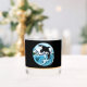 Ein Orca, der aus dem Ozean gesprungen ist, mit Wasser überall. Berge und blauer Himmel rund um den Killerwal gezeichnet alle in einem Art Nouveau Tattoo Stil.