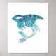 a decorative tattoo design of an orca or killer whale featuring foamy blue ocean waves on its silhouette as a decorative poster print