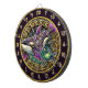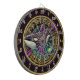 Fügen Sie Ihrem Mann Höhle oder Angellodge Charakter mit diesem außergewöhnlichen Dart-Motiv-Kunstwerk hinzu. Das Herzstück zeigt eine majestätische Orca mit einem Körper, der in lila, goldenen und blauen Designs schimmert und mit einer atemberaubend detaillierten Schildkröte gepaart ist. In einem verzierten, kreisförmigen Rahmen aus goldenen Schnörkeln und leuchtenden grünen Edelsteinen strahlt dieses Stück ein Fantasiegefühl aus. Seine Mischung aus rustikalem Charme und lebendiger Kreativität macht es zu einem Aushängeschild in jedem Erholungsraum. Dieses Kunstwerk eignet sich ideal für alle, die das Meeresleben lieben oder sich im Freien aufhalten. Es dient als Konversationsstarter und als raffiniertes Dekor.