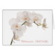 Die zarten weißen Blüten einer Phalaenopsis oder des Moth Orchid wirken zart und lichtdurchlässig vor einem unberührten weißen Hintergrund. Dieses hochwichtige Foto hat ein helles, luftiges und feminines Gefühl, dass Sie denken oder Frühling.