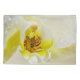 Gelbe und weiße dewy Orchidee, erinnert an einen coolen, würzigen Sommertag.
