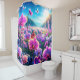 Dieser Duschvorhang hat eine Orchideenszene darauf.