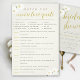 Ein Brautparty-Spiel Flyer mit einem Kinothema - passend zu den Liebe-Zitaten. Passen Sie 12 Filmtitel und 12 Lieben Zitate an, und geben Sie diese dann Ihren Gästen für eine lustige Aktivität für Filmliebhaber der Liebe. Für ein Brautparty mit dem Motto "Weiße Orchideen", mit zwei Zweigen von handgezeichnet weißen Orchideen, moderner Typografie und moderner Schriftzeichen-Kalligraphie mit femininen, eleganten Schnörkeln. Dieses elegante und moderne Design (mit passenden Einladungen und anderen Gegenständen) ist für eine moderne Braut, die weiße Orchideen Lieben hat, bezaubernd.