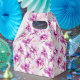 Gastgeschenk Box wird mit einem hübschen lila Orchideen Blumendruck gezeigt. Passen Sie dieses Objekt an oder kaufen Sie, wie es ist. Tipp: Fügen Sie einfach Ihre großen Leckereien hinzu und fügen Sie ein festliches Band hinzu. Lizenziertes Bild
