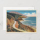Diese Vintage Oregon-Küstennachbildung einer Postkarte aus den 1940er Jahren zeigt die Küstenautobahn, die sich zwischen den Hügeln entlang der Küste zieht, mit dem Titel: "Die Oregon Coast Highway on the Shores of the Pacific". Schöne Szene in Retro-Farben.