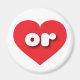 Dieser Magnet weist ein lebendiges rotes Herz auf, das die fett-, weiß-, abgerundeten Kleinbuchstaben enthält, oder eine spielerische Abkürzung für Oregon, den Biber-Staat.