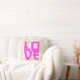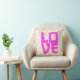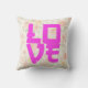 Un oreiller à jetons romantique avec le personnage d'amour japonais "愛" en rose chaud gras sur un motif à pivoine couleur douce. Arrière - plan floral pastel, cottagecore féminin esthétique, typographie d'inspiration asiatique. Parfait accent pour les chambres, les salons, les crèches ou comme cadeau de Saint-Valentin, de mariage ou d’anniversaire.