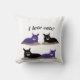 Le design montre deux paires de chats bleus et noirs à l'avant du coussin ; à l'arrière du coussin, vous pouvez voir une paire de chats - un noir et un bleu. Sur le devant se trouvent les mots "J'aime les chats". Vous pouvez facilement customiser le coussin en remplaçant ces mots par votre propre texte. C'est le coussin idéal pour toute personne qui aime les chats (et qui n'aime pas ?)