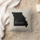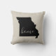 Montrez votre fierté de l'état de votre maison avec cet oreiller moderne chic jettent avec la silhouette de votre état carte et le mot HOME écrit à l'intérieur. Arrière - plan de texture de toile de burlap Faux (veuillez noter que les couvertures de coussin ne sont pas faites de matériaux de burlap). Cliquez sur le bouton Customiser pour ajouter votre propre texte et sélectionnez parmi tous nos styles de coussin pour créer votre propre design unique d'un genre !