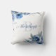 Oreiller à rose bleue aquarelle avec monogramme
